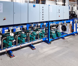 Destiné à l'agroalimentaire, la plasturgie, la cosmétique ou le vinicole, le froid industriel concerne les installations de forte puissance (> 150kW), souvent bi-étagées, fonctionnant au NH3 (ammoniaque) ou via fluides caloporteurs.